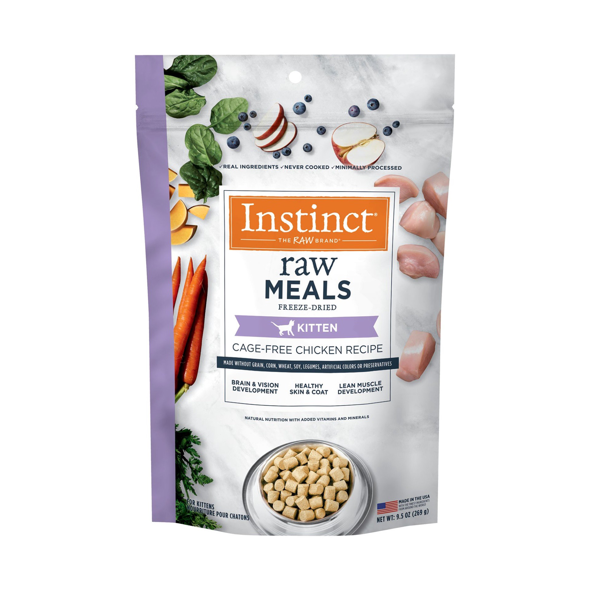 Upgrade your kittens bowl from kibble to freezedried raw. Instinct Raw FreezeDried Meals for Kittens is protein packed with cagefree chicken and organs and nonGMO vegetables, fruits vitamins mineral…