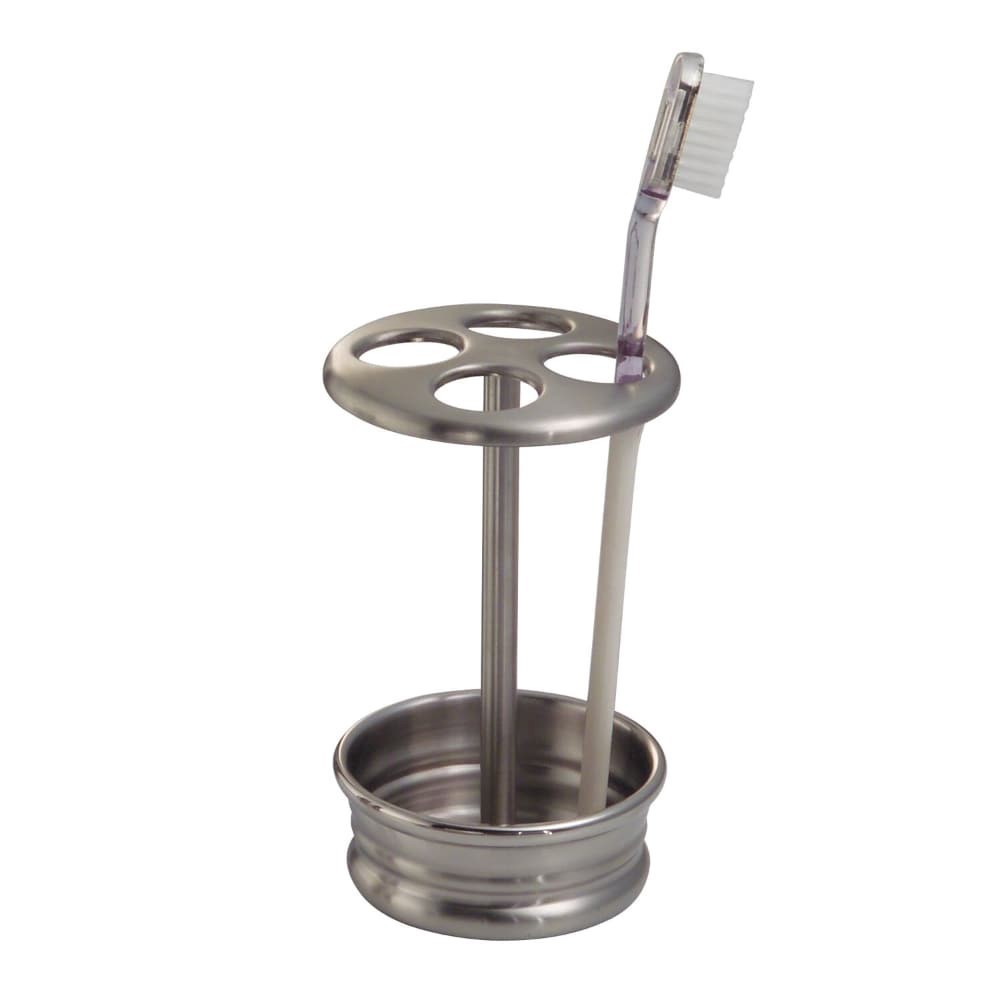 Rescue your family's toothbrushes from dark, cluttered vanity drawers and store them in style with the sophisticated Cameo Metal Toothbrush Stand.Holds four toothbrushesTextured foam rubber padStainleā¦