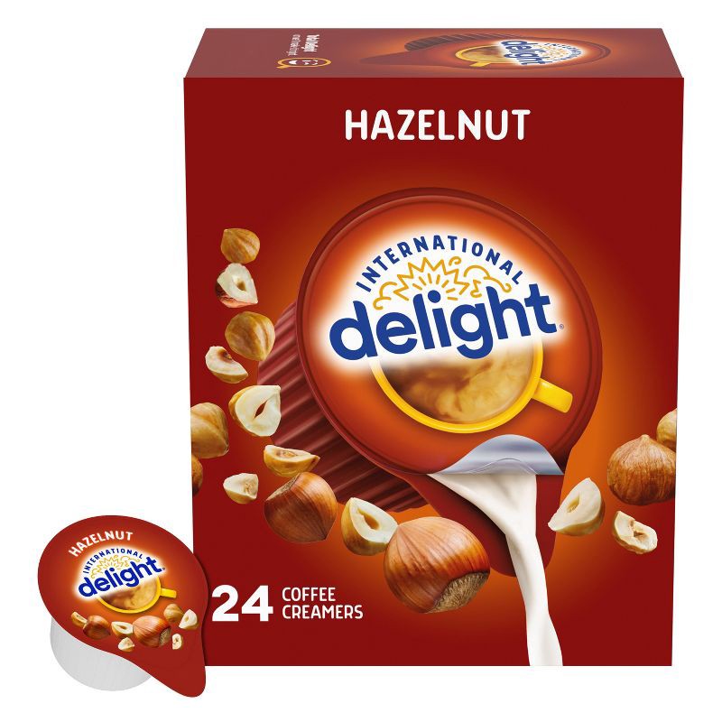 - CONVENIENT SINGLES: 24 pack of 0.44 fl oz singles of International Delight Hazelnut Coffee Creamer