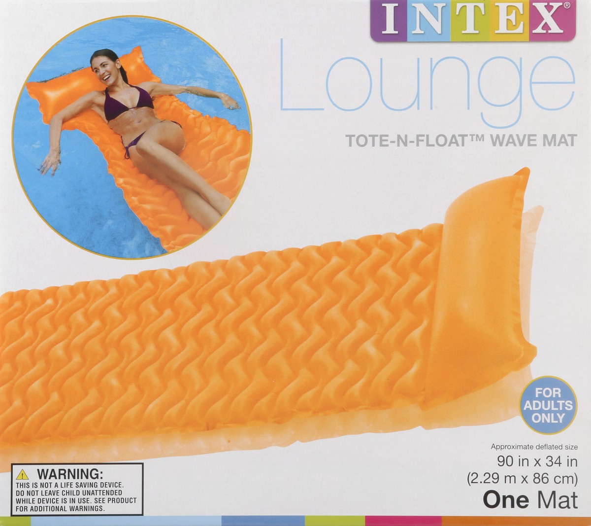 For adults only. Approximate deflated size: 90 in x 34 in (2.29 m x 86 cm). Lounge around the pool on a tangy-orange mat! Designed with a comfortable pillow for total relaxation. 2 air chambers for ad…