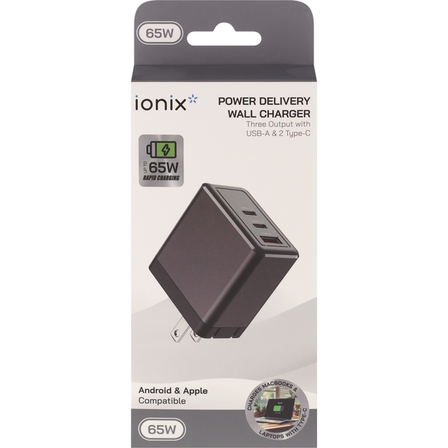 The IONIX™ 65W PD Wall Charger provides fast and reliable charging. The charger supports iPhone 15 and Android. Type-C devices with Quick Charge and PD technology. The Wall Charger supports up to 65W …