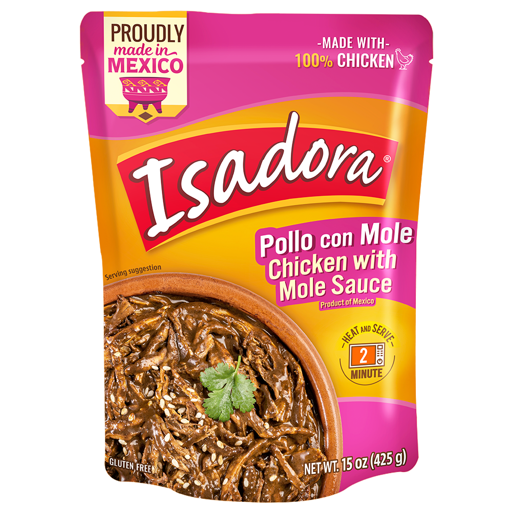 Water, chicken meat, mole powder (corn flour,mulato pepper, ancho pepper, pasilla pepper, peanut, onionpowder, garlic powder, cinnamon, cloves, ground blackpepper, ground anise seed), brown sugar, cho…