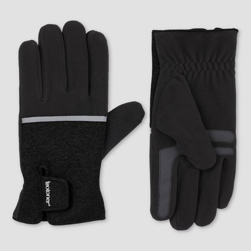 Isotoner Men's Tech Stretched Fleece Gloves - Black XL