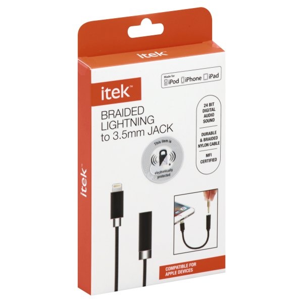 24 bit digital audio sound. Durable & braided nylon cable. MFI certified. Braided lightning to 3.5mm jack. This item is electronically protected. Features: Lightning to 3.5mm jack adapter; 24 bit digiā¦