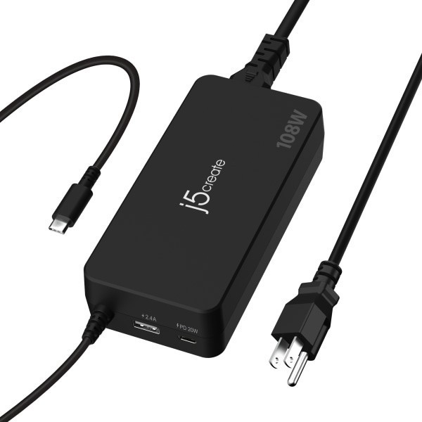 Charge and power phones, laptops and game consoles with the j5create 108W 3-Port PD USB-C Super Charger. This charge is equipped with 2 USB-C power delivery ports and 1 USB Type-A port, and it uses bu…