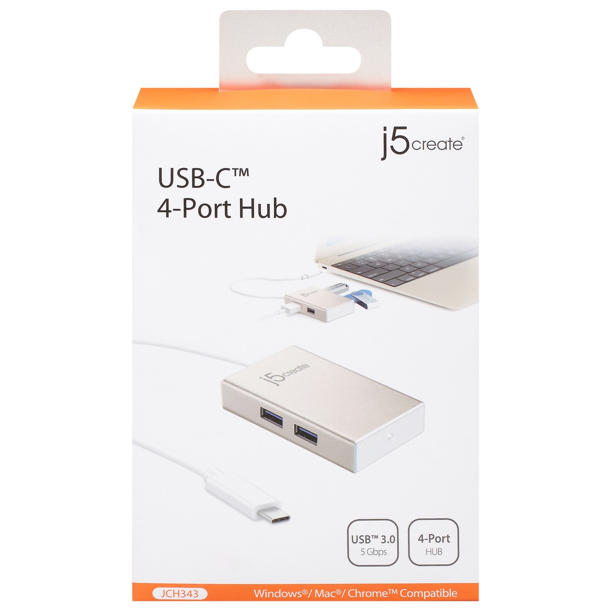 USB 3.0 5 Gbps. 4-Port HUB. Windows / Mac / Chrome Compatible. USB-C. 9.8 in. / 25 cm. LED white. USB 3.0/2.0 devices hard drive, camera, mouse, keyboard, etc. Quickly add a 4-port USB 3.0 hub over th…