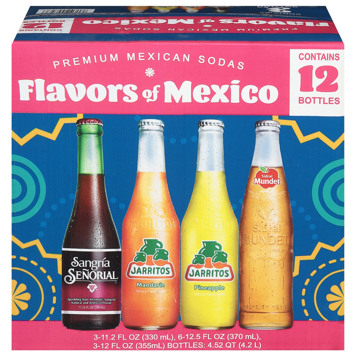 Flavors of Mexico. Contains 12 bottles. Contains 3 bottles of each flavor.