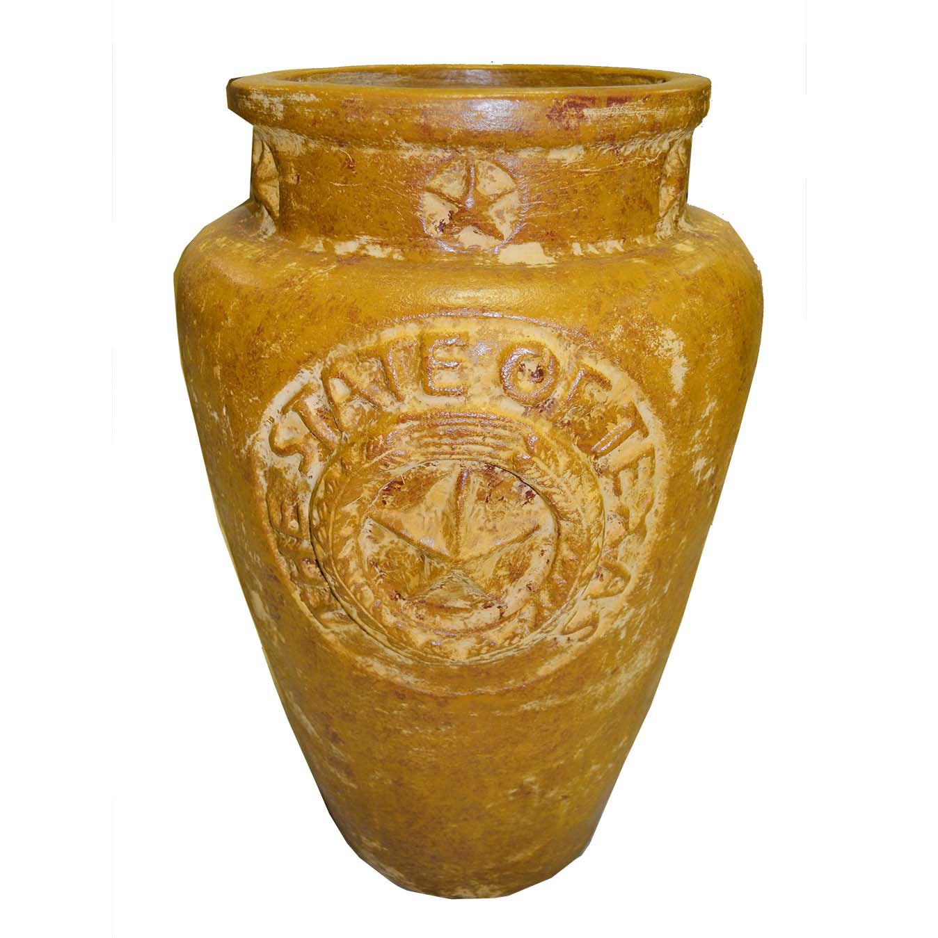 Handmade clay pottery.Fired and painted in earthy tones with a Texas seal design.