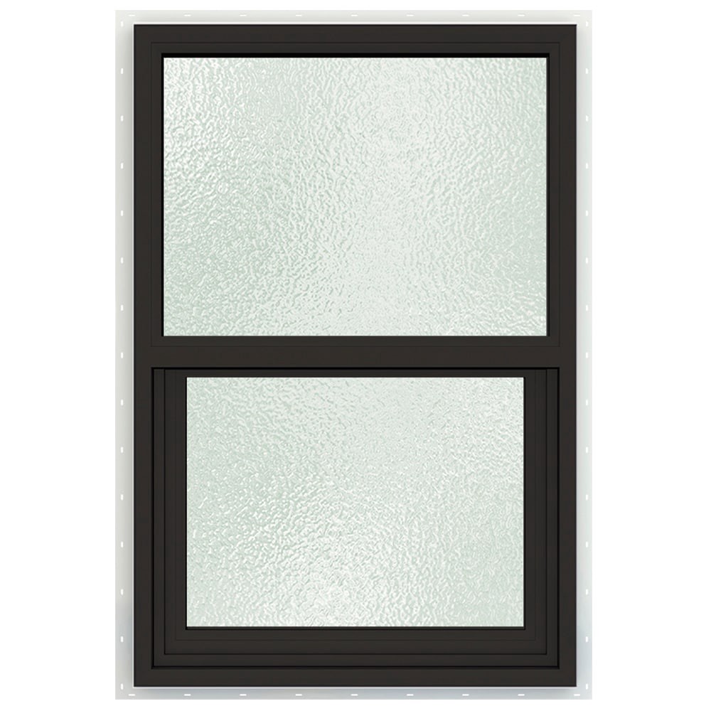 JELD-WEN Premium Atlantic Vinyl 23-1/2-in x 35-1/2-in Bronze Exterior Vinyl New Construction Single Hung Window Impact Resistant Low-E Double Pane Glass (Half Screen Included) Hurricane Approved