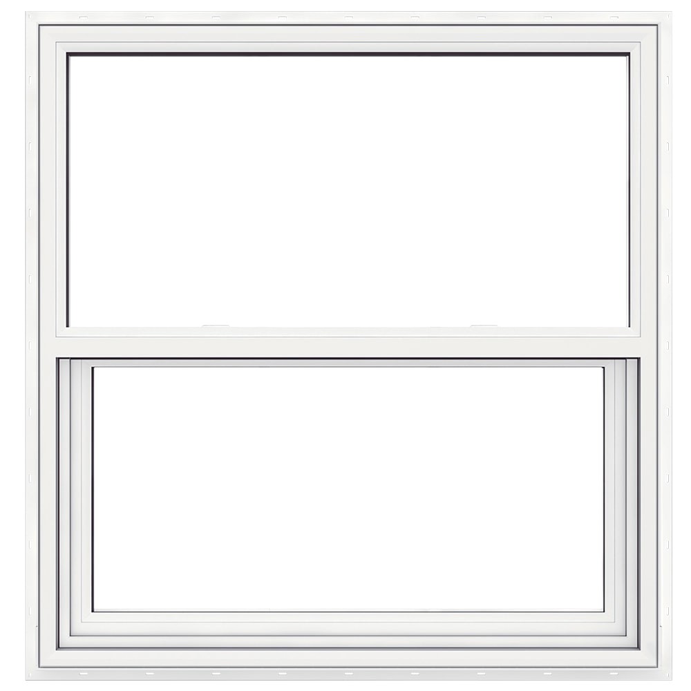 JELD-WEN Premium Atlantic Vinyl 31-1/2-in x 35-1/2-in White Exterior Vinyl New Construction Single Hung Window Impact Resistant Low-E Double Pane Glass (Half Screen Included) Hurricane Approved