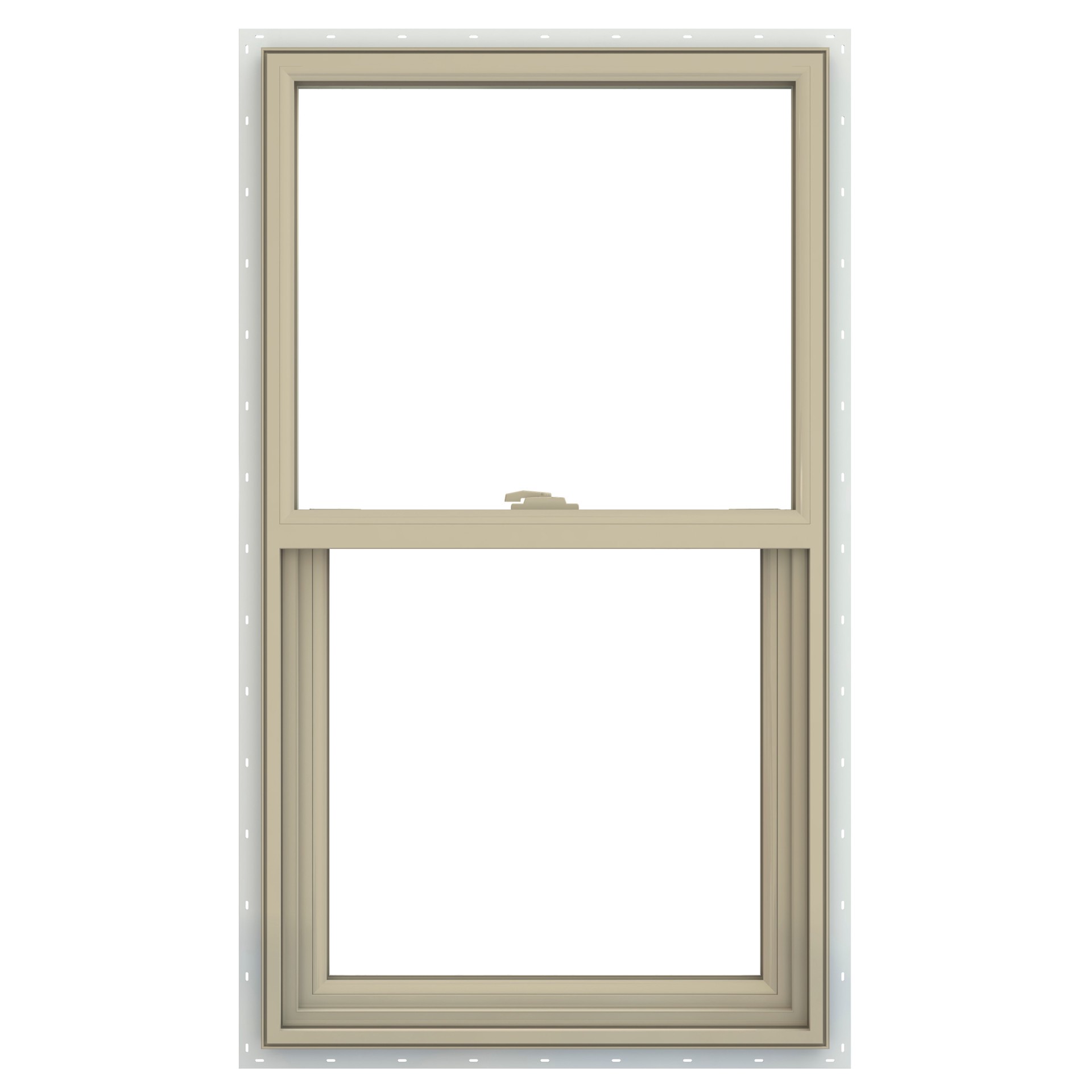 JELD-WEN V-2500 23-1/2-in x 35-1/2-in Almond Exterior Vinyl New Construction Single Hung Window Low-E argon Double Pane Glass (Half Screen Included)
