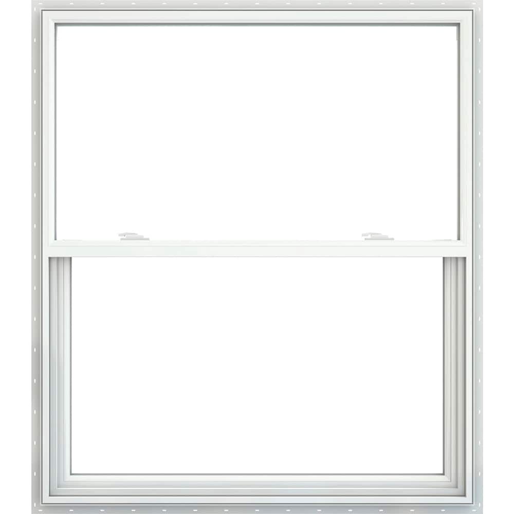 JELD-WEN V-2500 31-1/2-in x 35-1/2-in White Exterior Vinyl New Construction Single Hung Window Low-E Double Pane Glass (Half Screen Included)