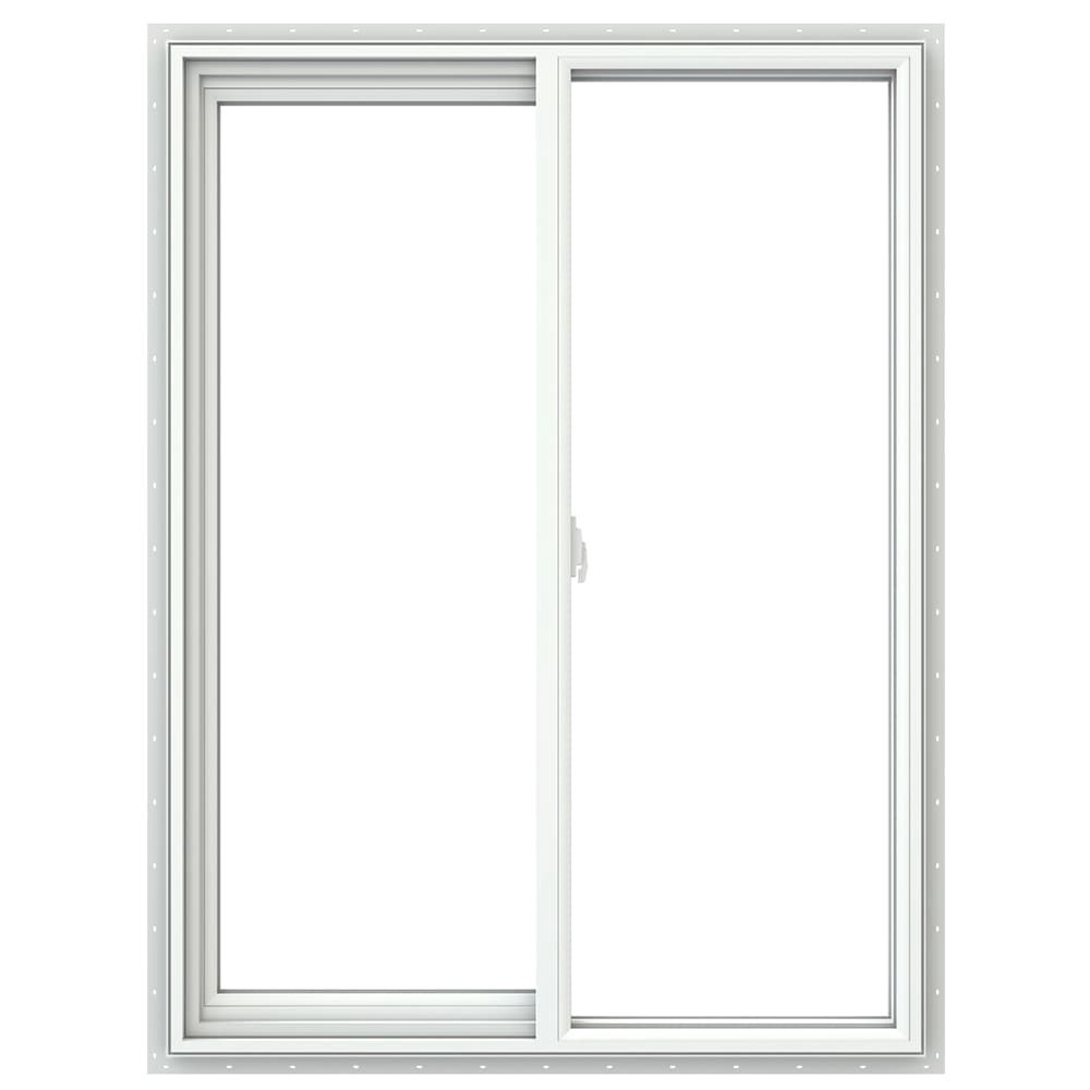 JELD-WEN V-2500 35-1/2-in x 47-1/2-in White Exterior White Interior Left-Handed Vinyl Sliding Window Annealed Glass (Full Screen Included)