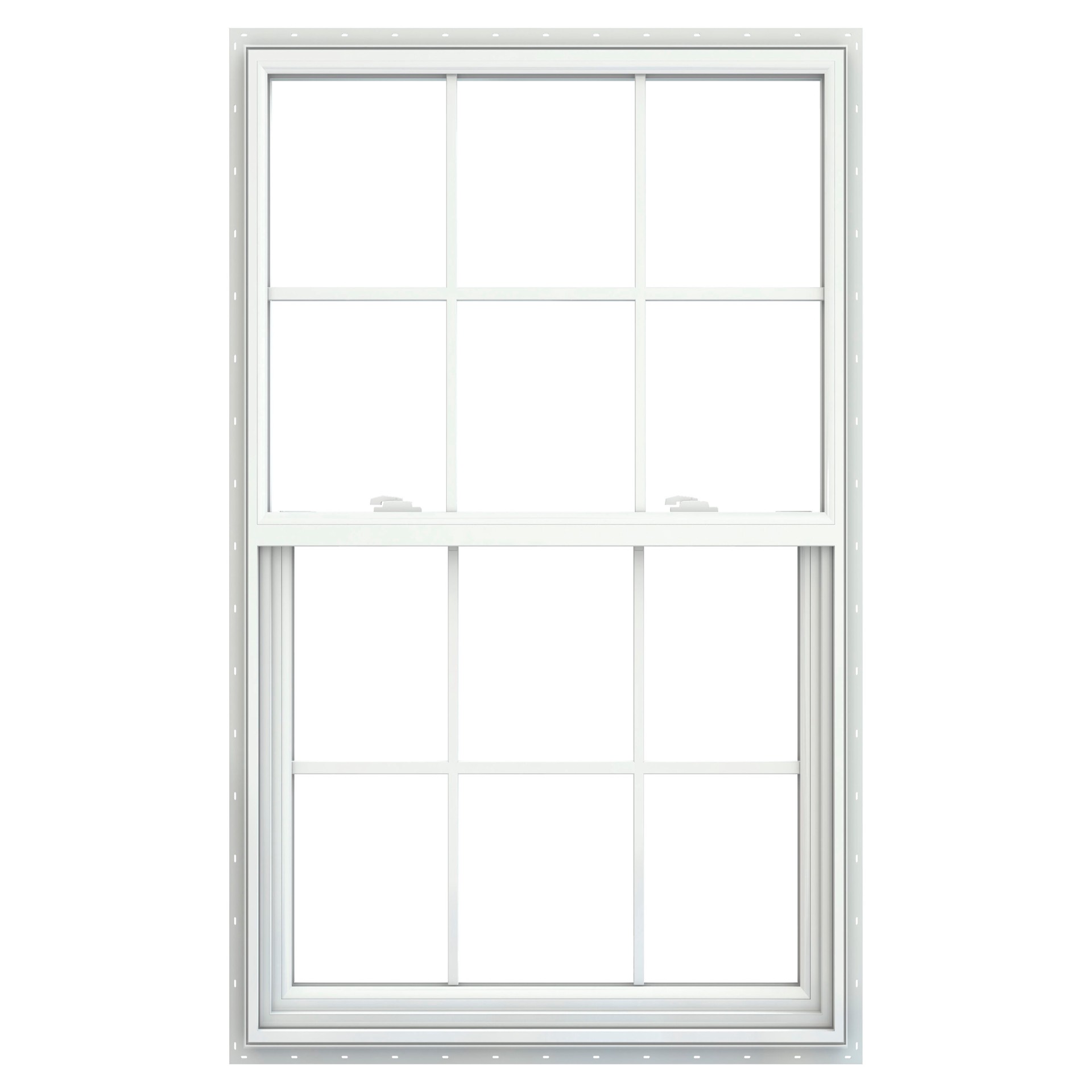 JELD-WEN V-2500 35-1/2-in x 59-1/2-in White Exterior Vinyl New Construction Single Hung Window Low-E Double Pane Glass with Grids, (Half Screen Included)