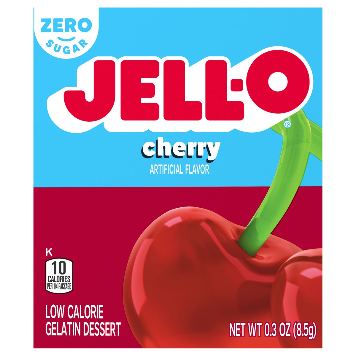 Snack happy. Jell-O Cherry Artificially Flavored Zero Sugar Low Calorie Gelatin Dessert Mix lets you add some wonder to your day with a fun snack. Spoon up a smile with our zero sugar artificially fla…