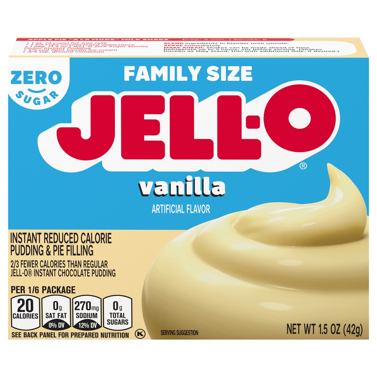Snack happy. Jell-O Zero Sugar Vanilla Artificially Flavored Instant Reduced Calorie Pudding Mix & Pie Filling tastes delicious whether you enjoy it as a treat or use it as an ingredient in your favor…