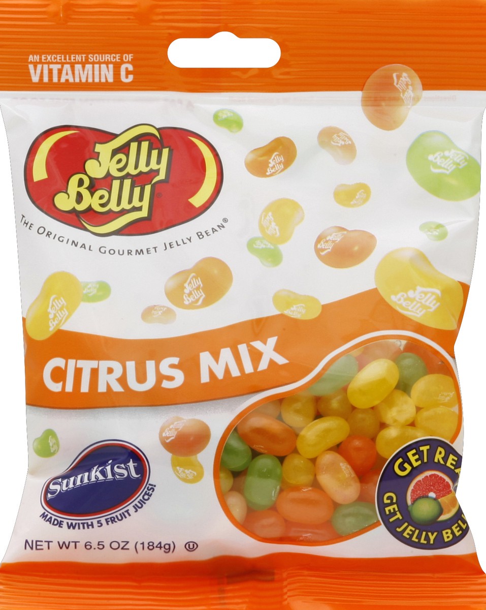 Sunkist lemon, Sunkist lime, Sunkist orange, Sunkist pink grapefruit, Sunkist tangerine. Naturally flavored. An excellent source of vitamin C. The original gourmet jelly bean. Made with 5 fruit juices…