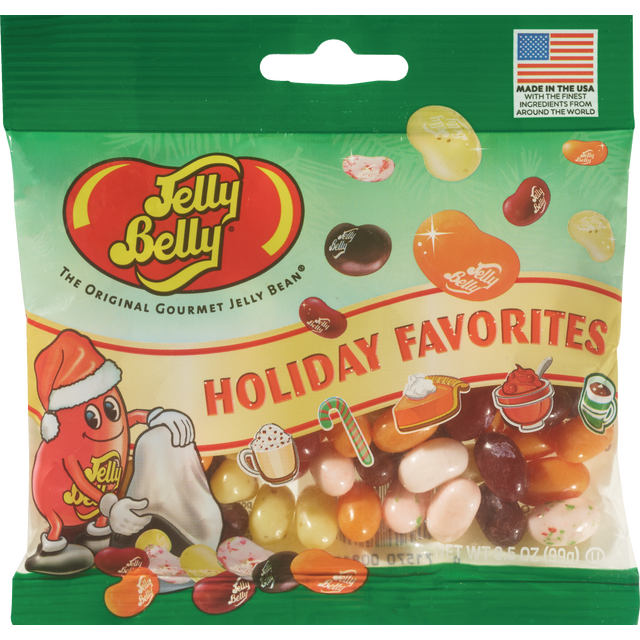Stocking Stuffer bags from Jelly Belly feature gourmet goodies and fun designs, starring Mr. Jelly Belly as Santa's Helper Flavor assortment includes egg nog, candy cane, pumpkin pie, cranberry sauce …