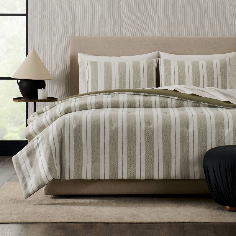 Bring understated sophistication to your bedroom with the Heritage Stripe Comforter Set from Jeremiah Brent Home. Crafted from woven yarn-dyed cotton in a textural stripe design, it blends natural sof…