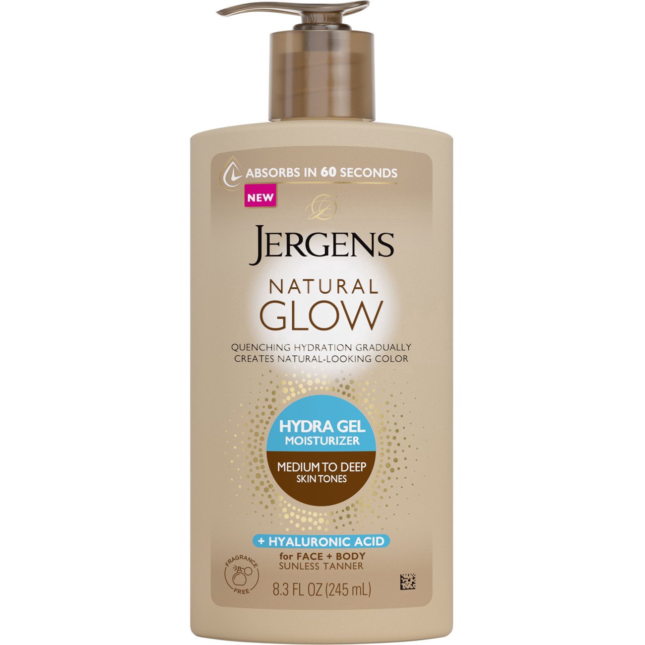 Jergens Natural Glow Hydra Gel Moisturizer Medium to Deep Skin Tones, plus Hyaluronic Acid for Face + Body Sunless Tanning. Quenching Hydration gradually creates natural-looking color. Absorbs in 60 s…