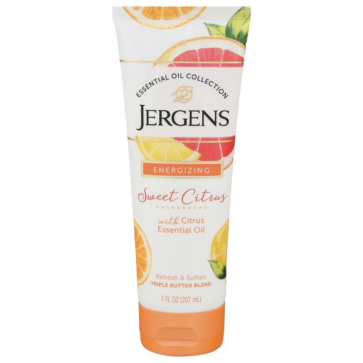 Need a little pick-me-up? Recharge. Refresh. Let Jergens Sweet Citrus Body Butter, infused with sweet citrus essential oil, lift your spirits, and delight your senses. Soft skin and an invigorating bo…