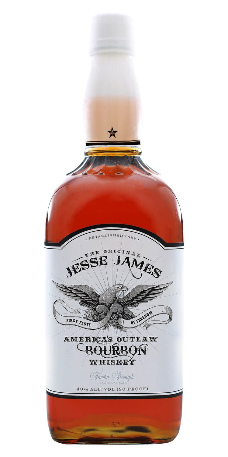 Made in the spirit of America's true outlaw, Jesse James Bourbon Whiskey is old-time charcoal mellowed and aged in oak casks for a minimum of 36 months. Smooth enough for sipping and great for mixing.