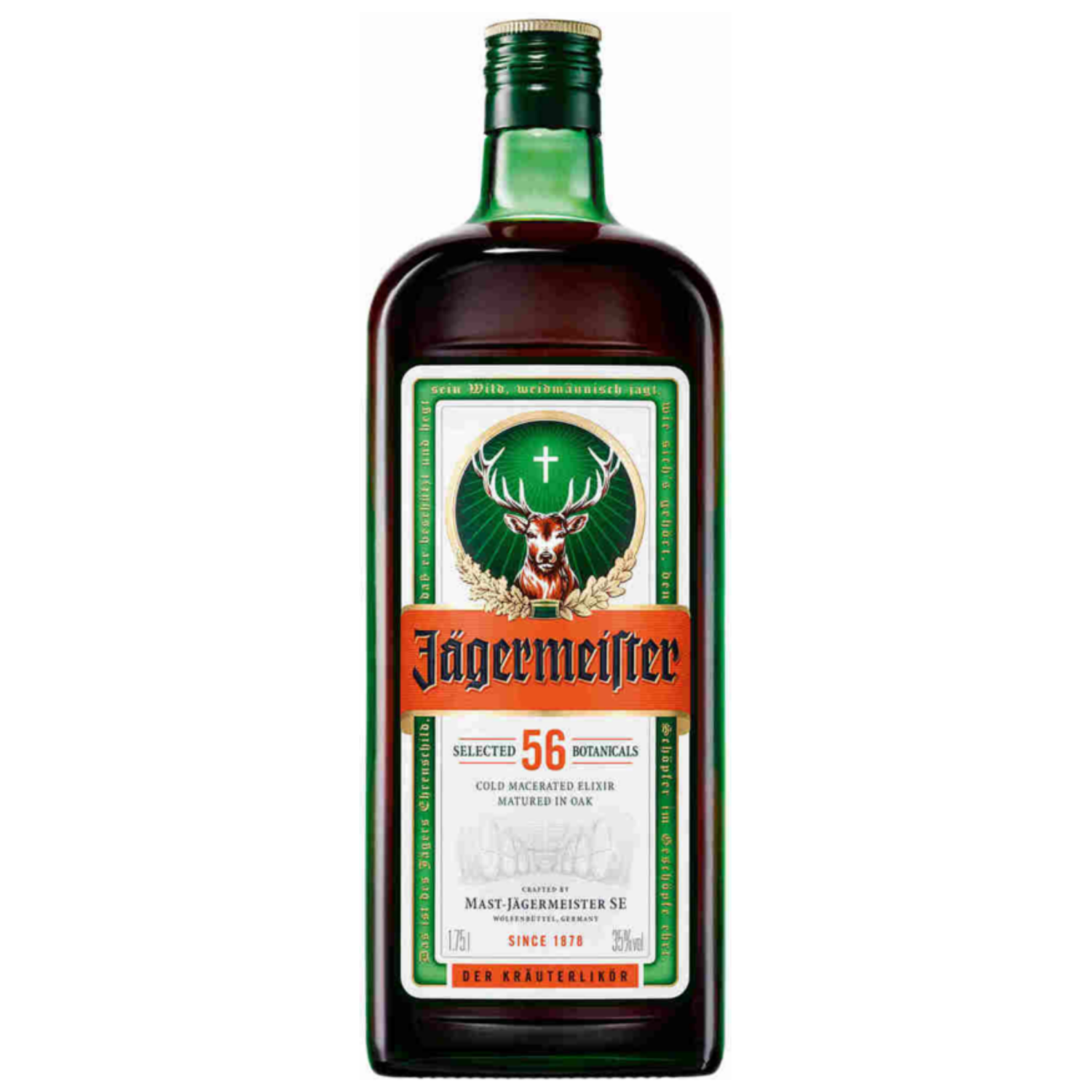 56 selected botanicals. Cold macerated essence refined in oak. Since 1878. Your hands hold our Jagermeister - crafted from a secret and closely guarded German recipe for 56 hand-selected botanicals. T…
