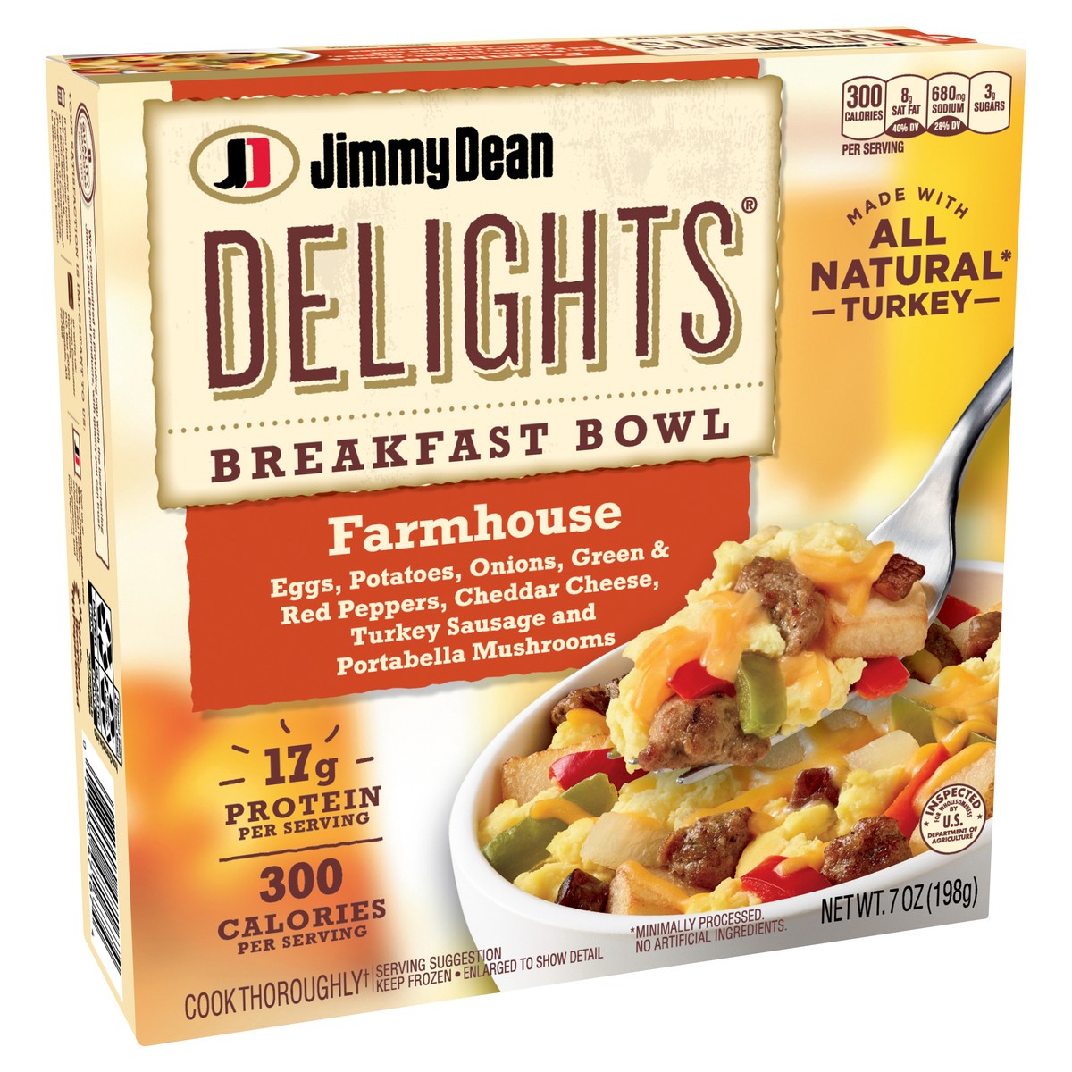 All of your breakfast favorites together in one bowl. Filled with turkey sausage crumbles, portabella mushrooms, fluffy eggs, homestyle potatoes, bell peppers and real cheddar cheese, Jimmy Dean Delig…