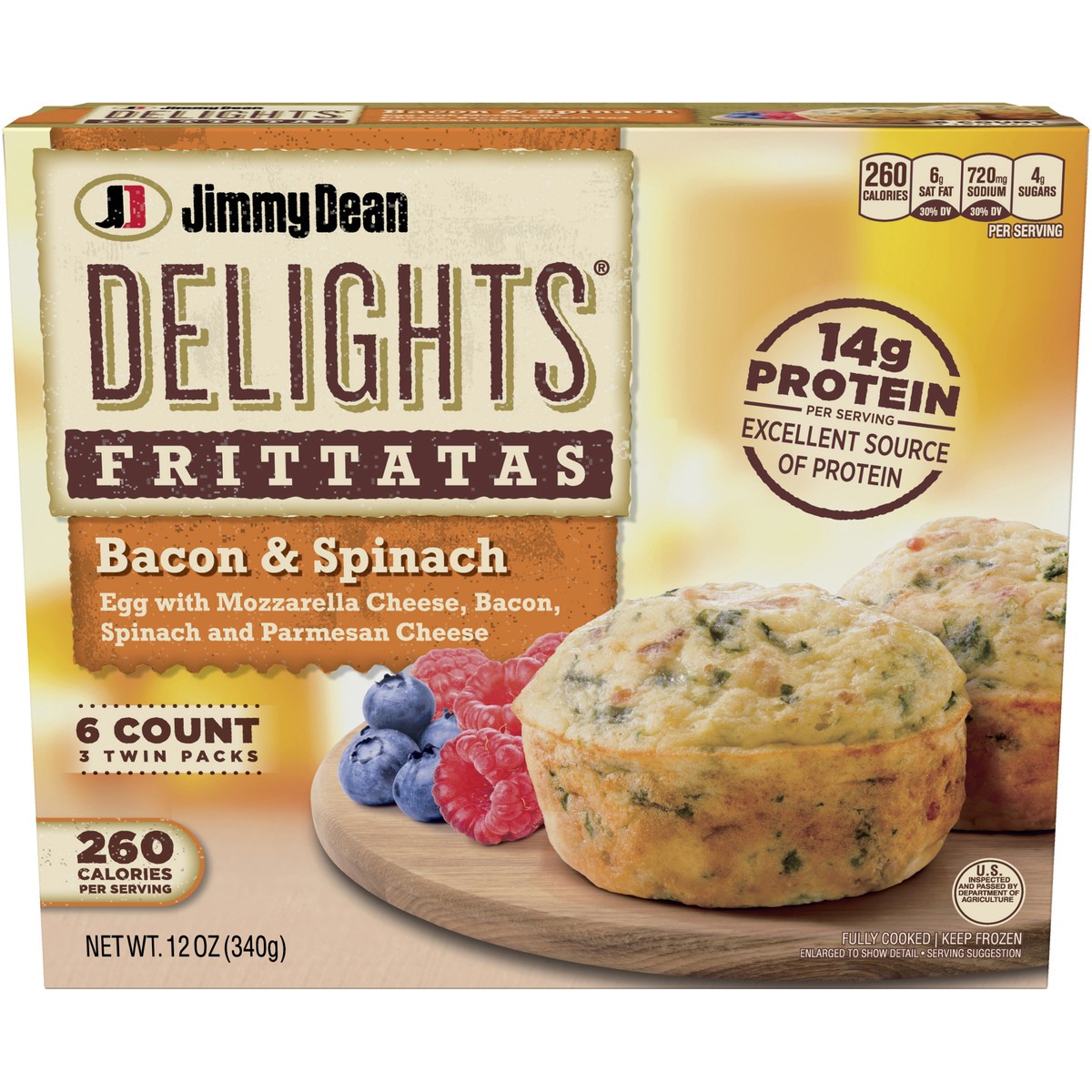 Jimmy Dean Delights Bacon and Spinach Frittatas is a real breakfast, real fast. This flavorful breakfast is packed with bacon, spinach and cheese in a fluffy egg muffin. These breakfast frittatas have…