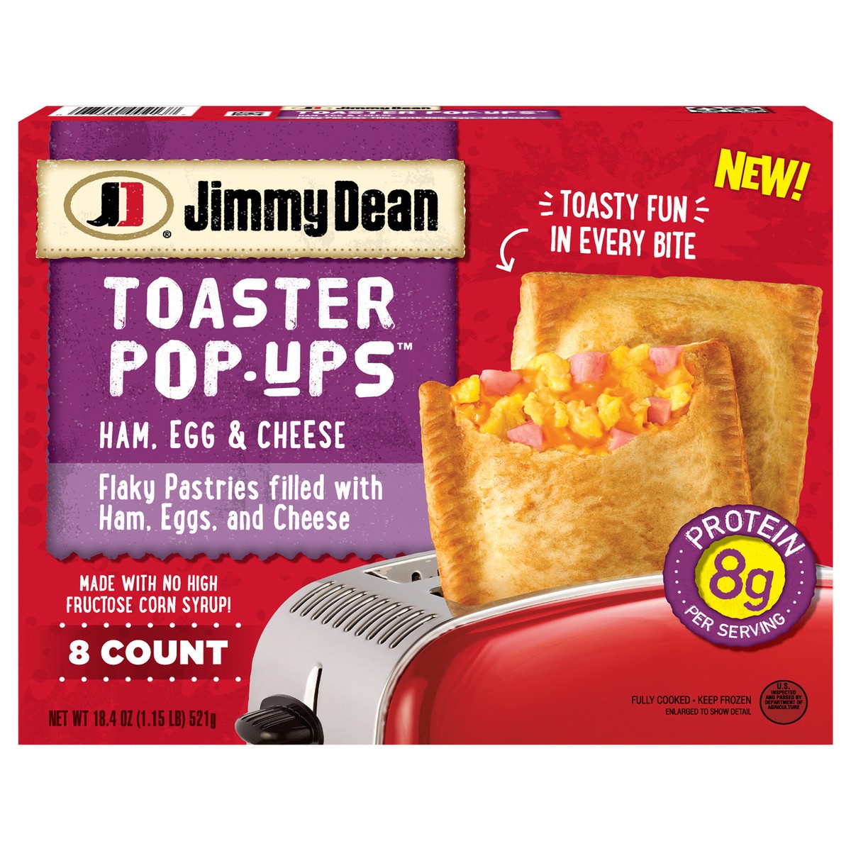 Start your day off right with Jimmy Dean Sausage\, Egg and Cheese Toaster Pop-Ups. Our Toaster Pop-Ups are made with fully-cooked Jimmy Dean ham\, eggs and cheddar cheese inside of flaky breakfast pas…