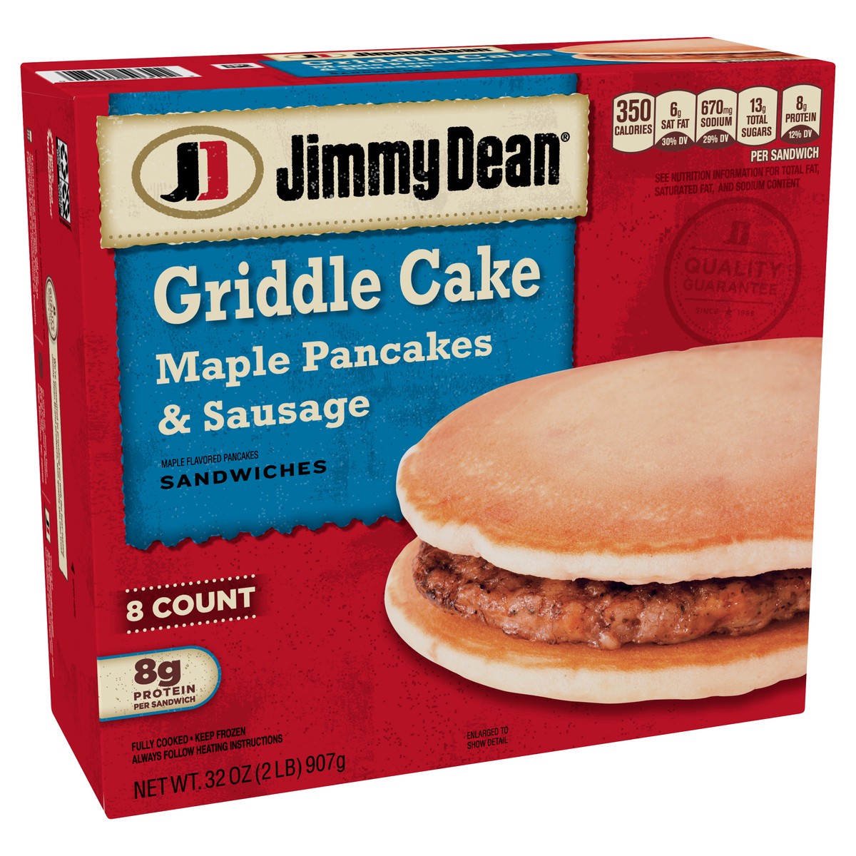 Enjoy breakfast any time of day with Jimmy Dean Maple Pancake & Sausage Griddler Sandwiches. Featuring savory sausage between fluffy maple pancakes\, our griddler sandwiches are delicious to the last …