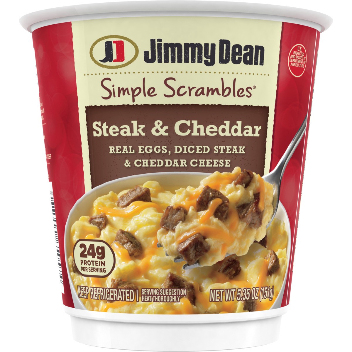 Wake up and enjoy a fresh made breakfast with Jimmy Dean Simple Scrambles Steak & Cheddar Breakfast Cups. Made with real eggs, diced steak and cheddar cheese, our Jimmy Dean Simple Scrambles breakfast…