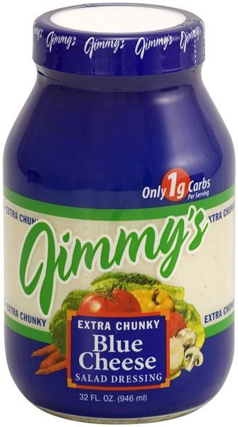 0 g trans fat. Gluten free. Made with amablur blue cheese. The fish house. www.jimmysdressing.com. Proudly made in Minnesota.