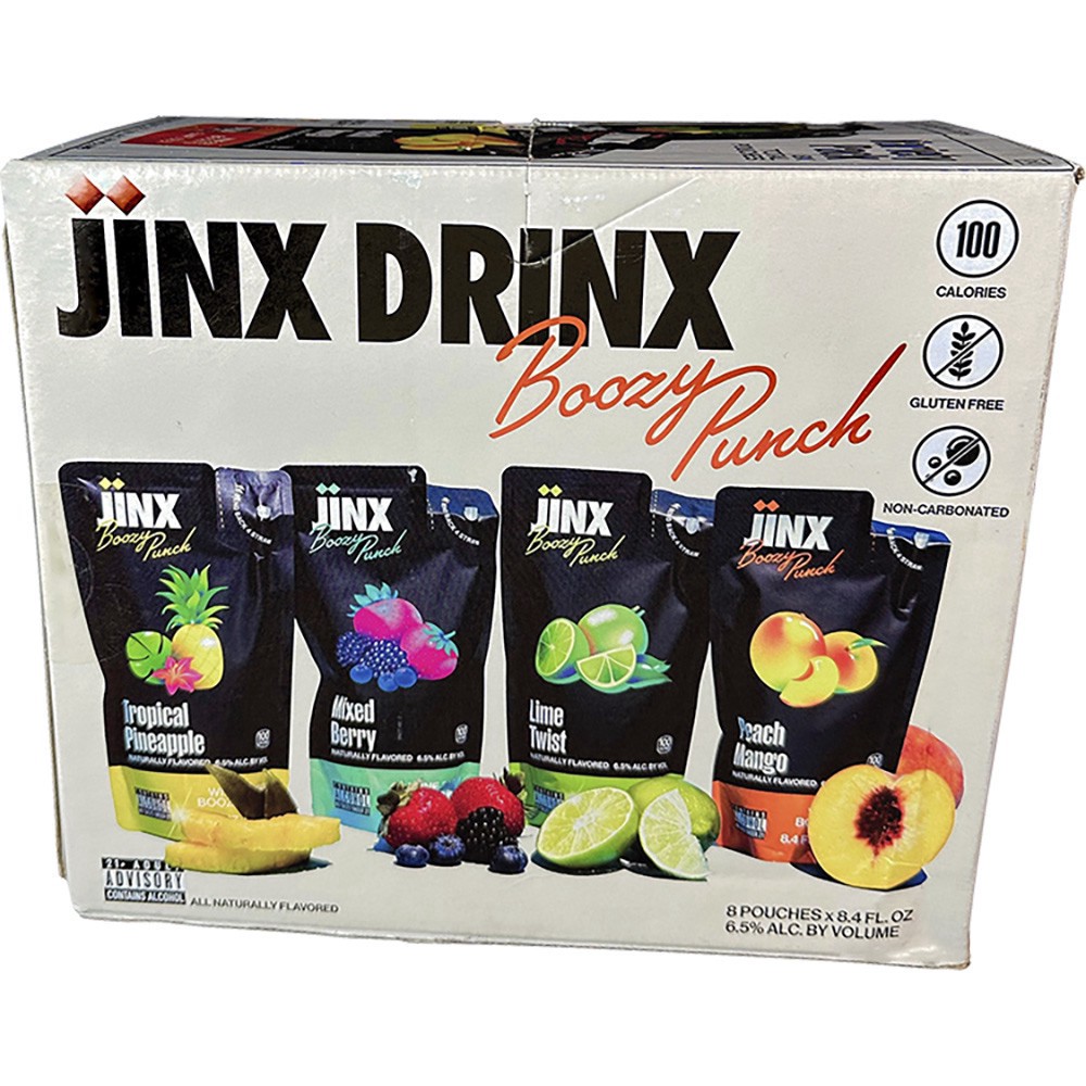 United States - California - The Jinx Boozy Punch Variety 8-pack includes two of each flavor: Peach Mango, Lime Twist, Mixed Berry and Tropical Pineapple. It's non-carbonated and lightly sweet/100 cal…