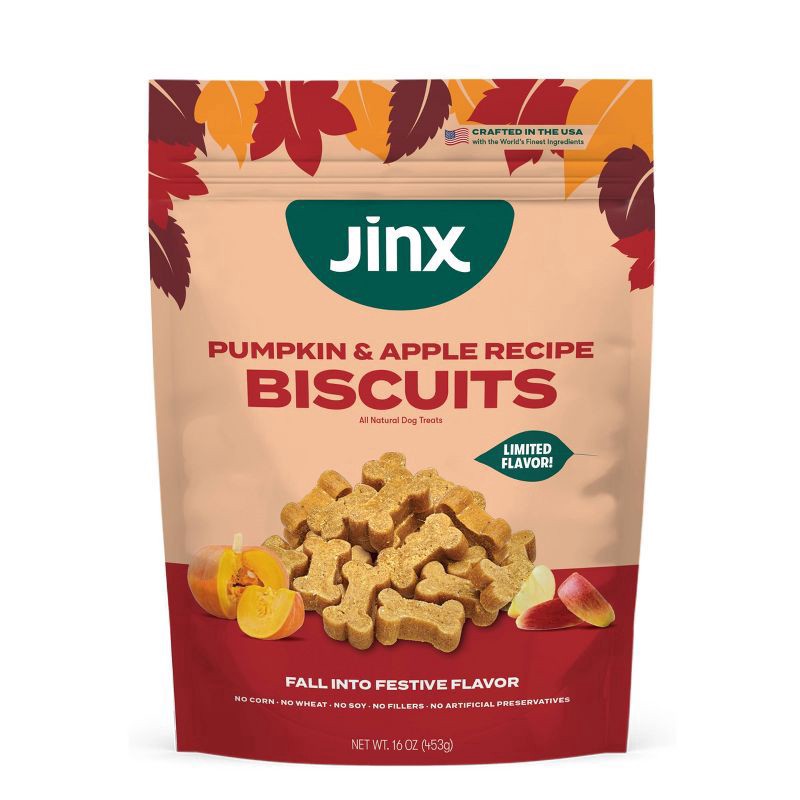 Share the joy of fall flavors with your dog with Jinx Pumpkin & Apple Biscuits. Pumpkin is not just a powerhouse superfood, it's the comforting flavor that signals the start of the Fall and the holida…