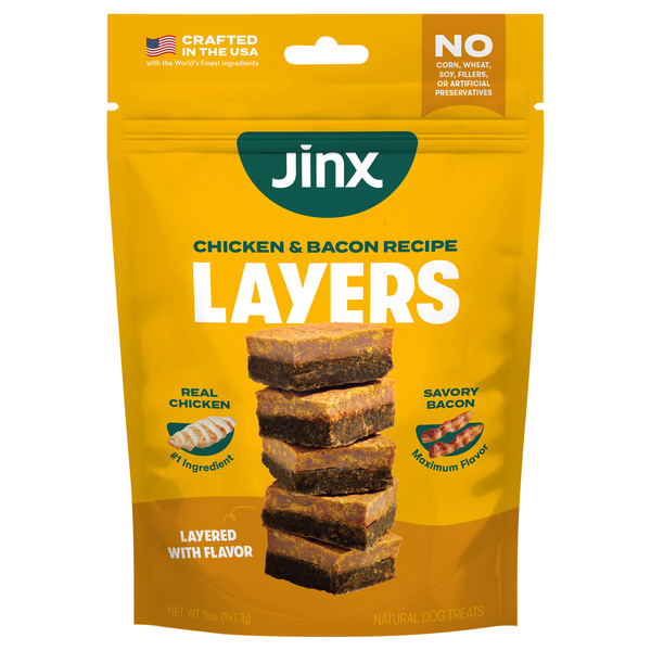slide 1 of 1, Jinx Layers Chicken & Bacon Dog Treats, 5 oz