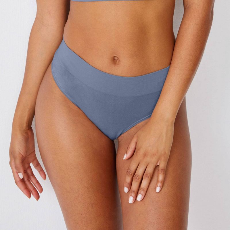 slide 3 of 3, Jockey Generation™ Women's Seamfree® Comfort Waist Thong 2pk - Steel Blue/Tan S: Mid Rise, Lightweight, Knit, 2 ct
