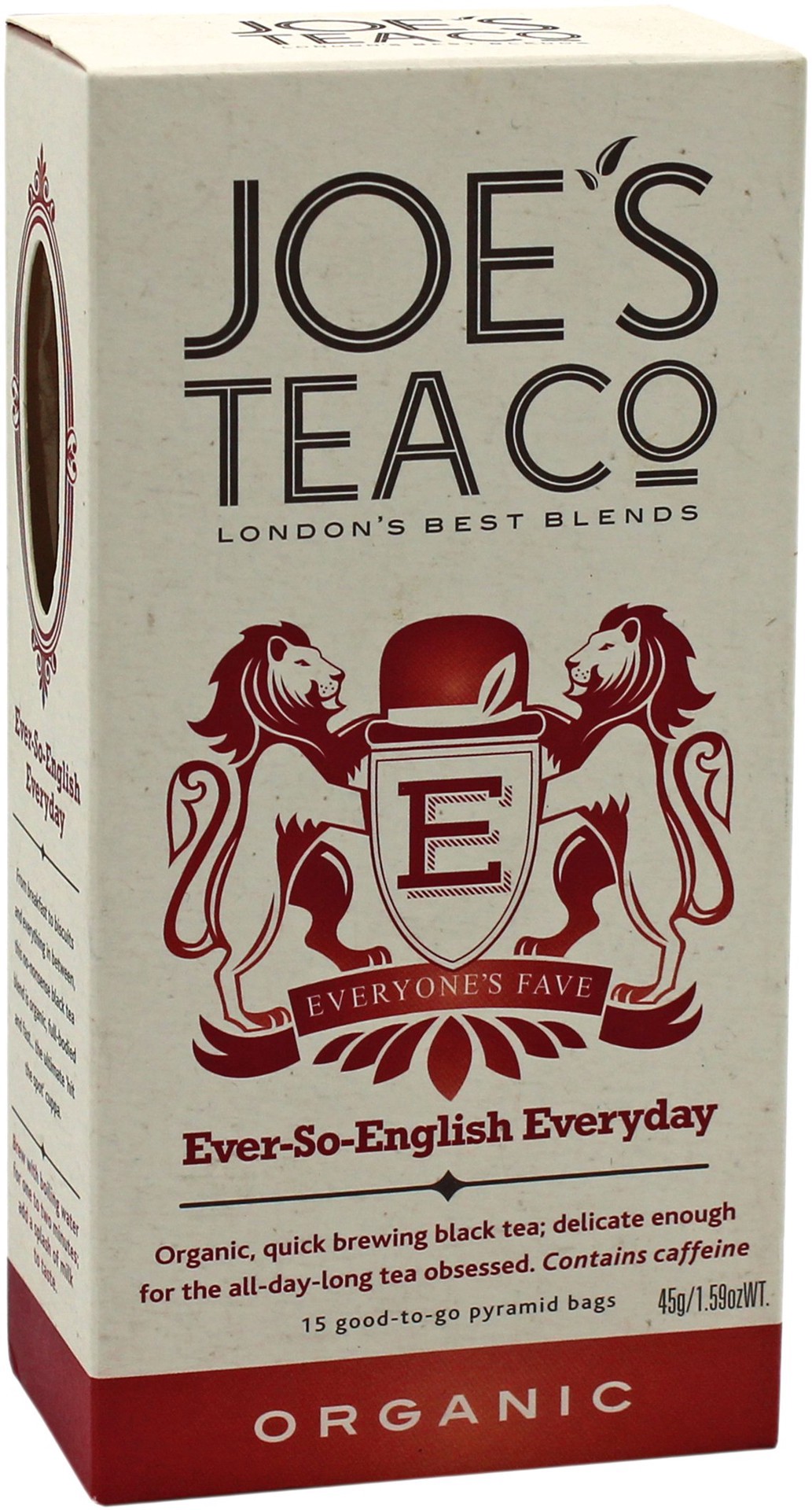 Joe's Tea Co. Organic Ever-So-English Everyday Tea. Organic, quick brewing black tea; delicate enough for the all-day-long tea obsessed. From breakfast to biscuits and everything in between, this no-n…