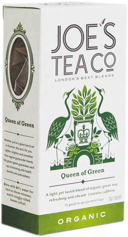 Joe's Tea Co. Organic Queen Of Green Tea. A light yet lavish blend of organic green tea; refreshing and vibrant. Lighter, brighter and smoother than regular gunpowder blends, this green queen guaranteā¦