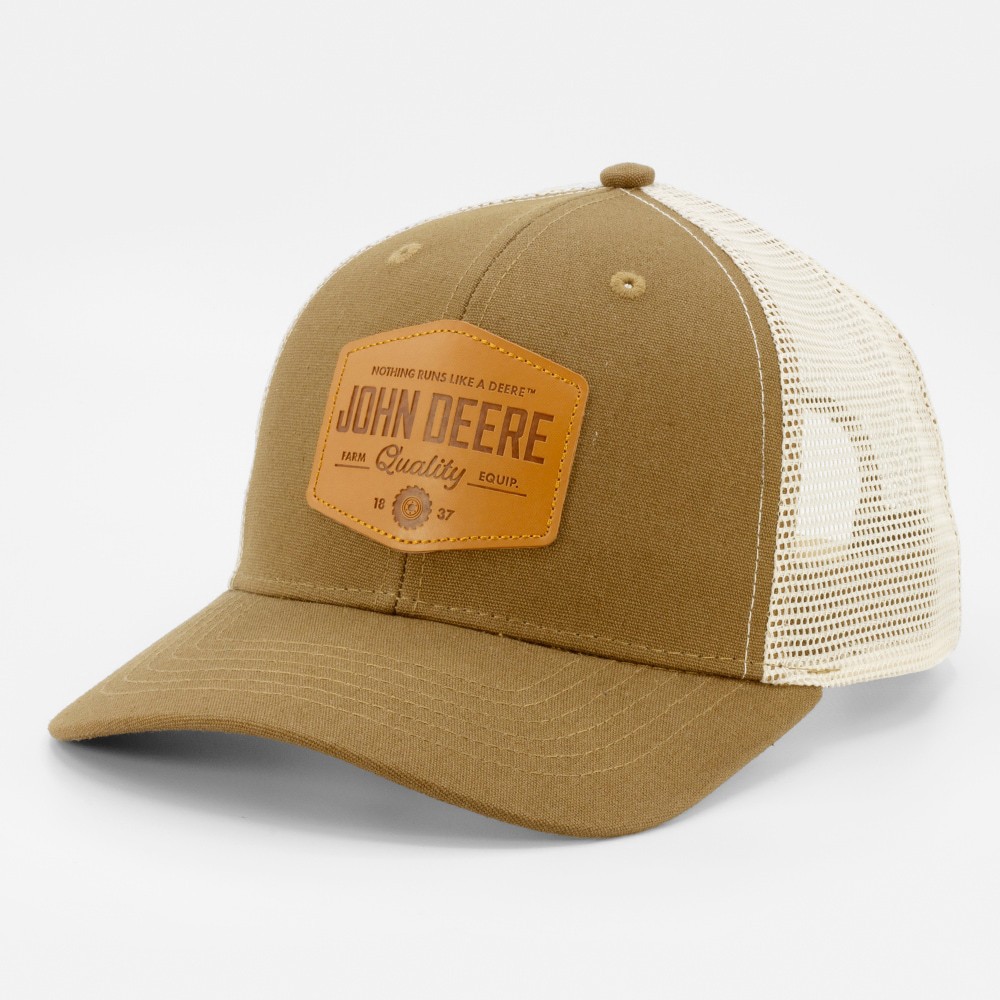 This structured trucker hat with a mesh back is a must-have staple for your John Deere cap collection.. Made with a heavy cotton canvas and polyester mesh - you can throw on this cap for any adventure…