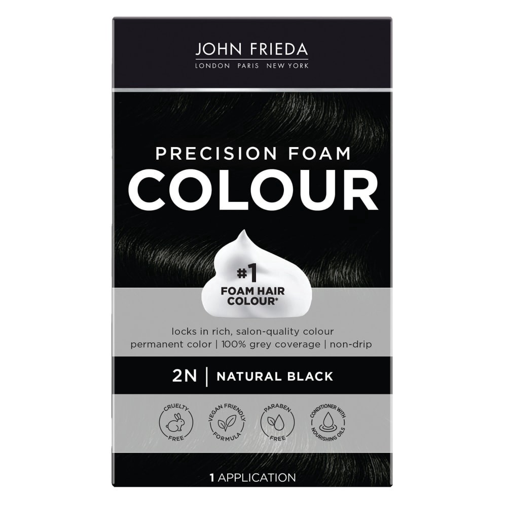 100% grey coverage. Non-drip. Thick foam for deep colour saturation. Locks in rich salon-quality colour. John Frieda: London; Paris; New York. No patches. Experience fade-resistant, salon-quality colo…