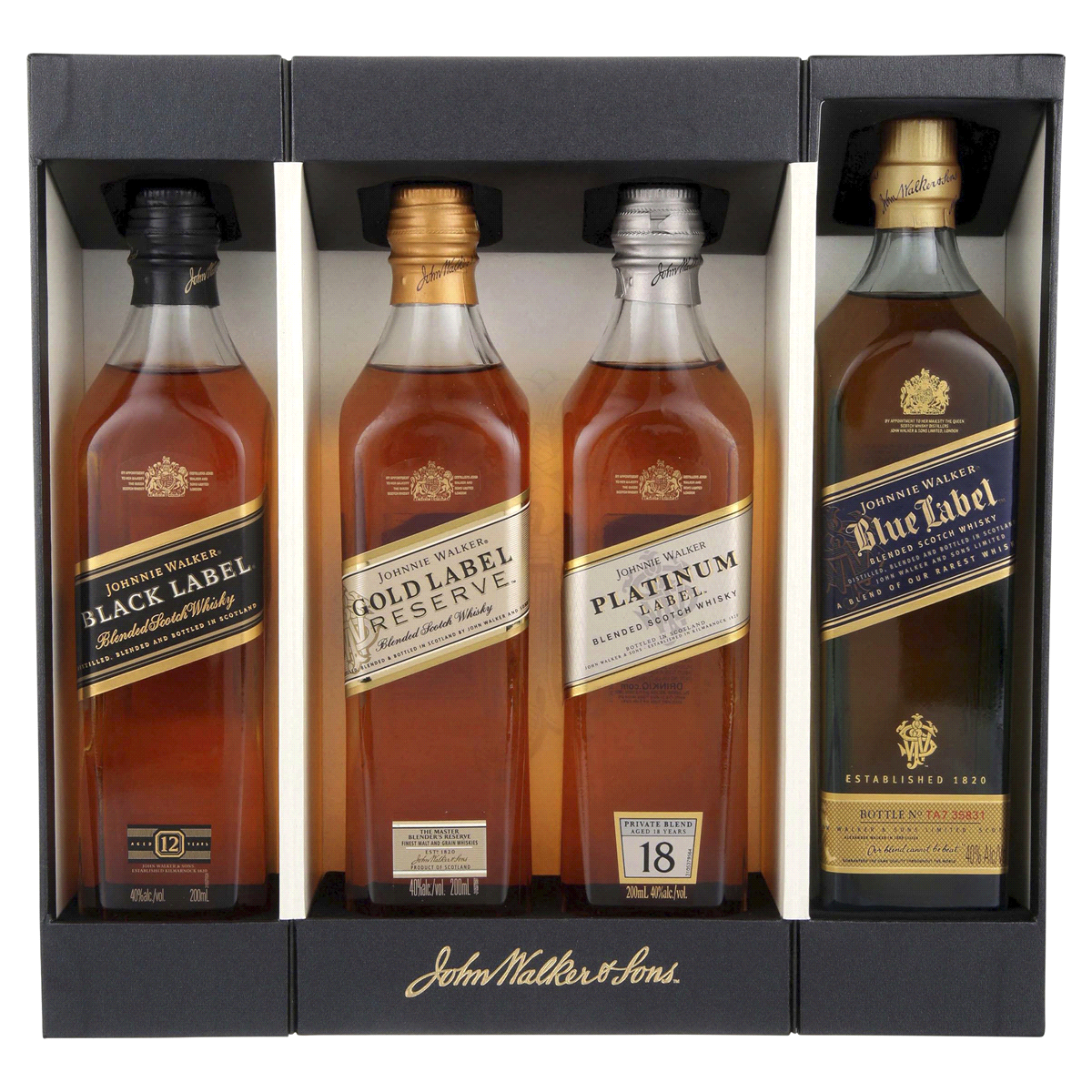 Johnnie Walker 200mL Discovery Pack with Blue Label, 18 Year Old, Gold Label Reserve, Black Label