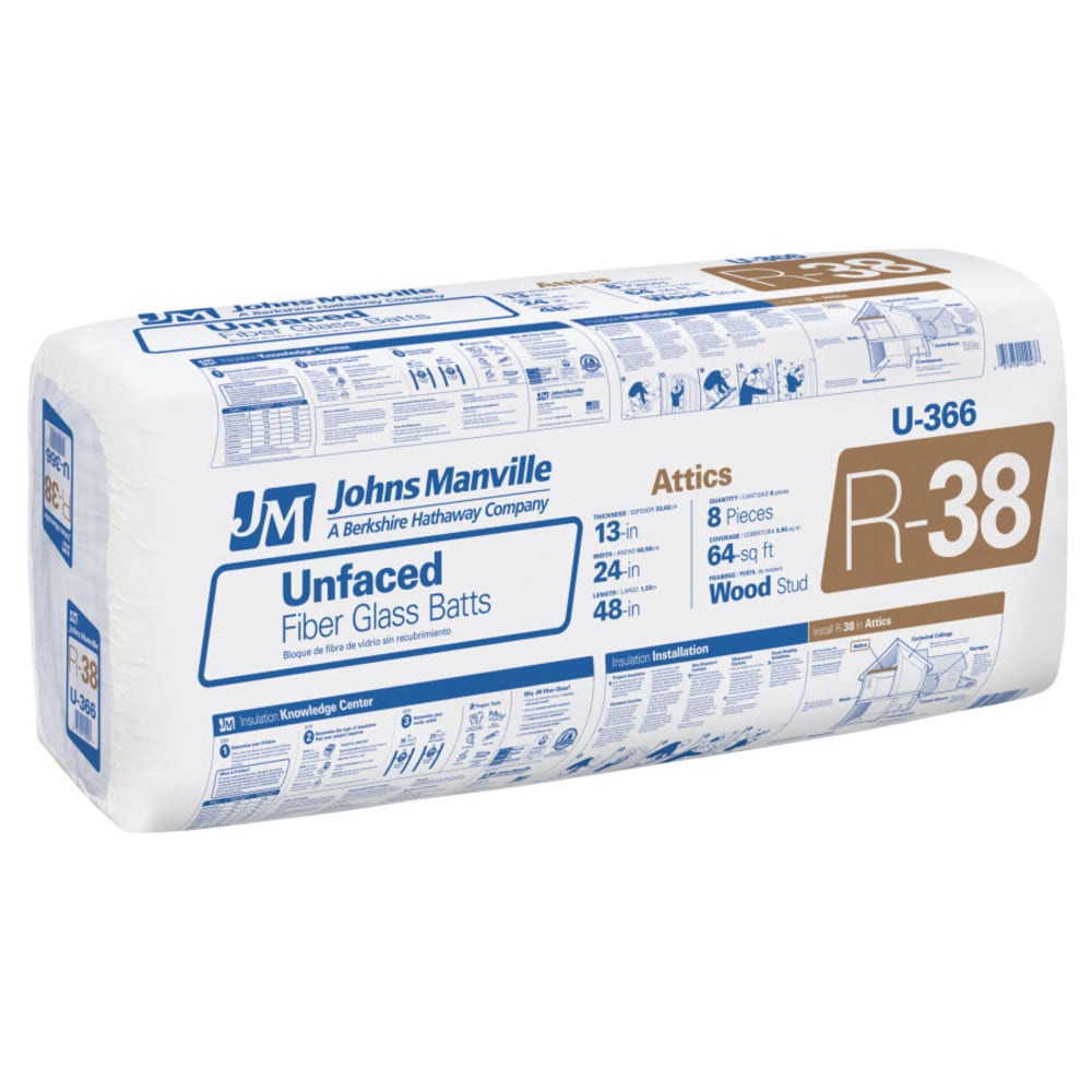 Johns Manville R- 38 Attic Unfaced Fiberglass Batt Insulation 64-sq ft ( 24-in W x 48-in L)