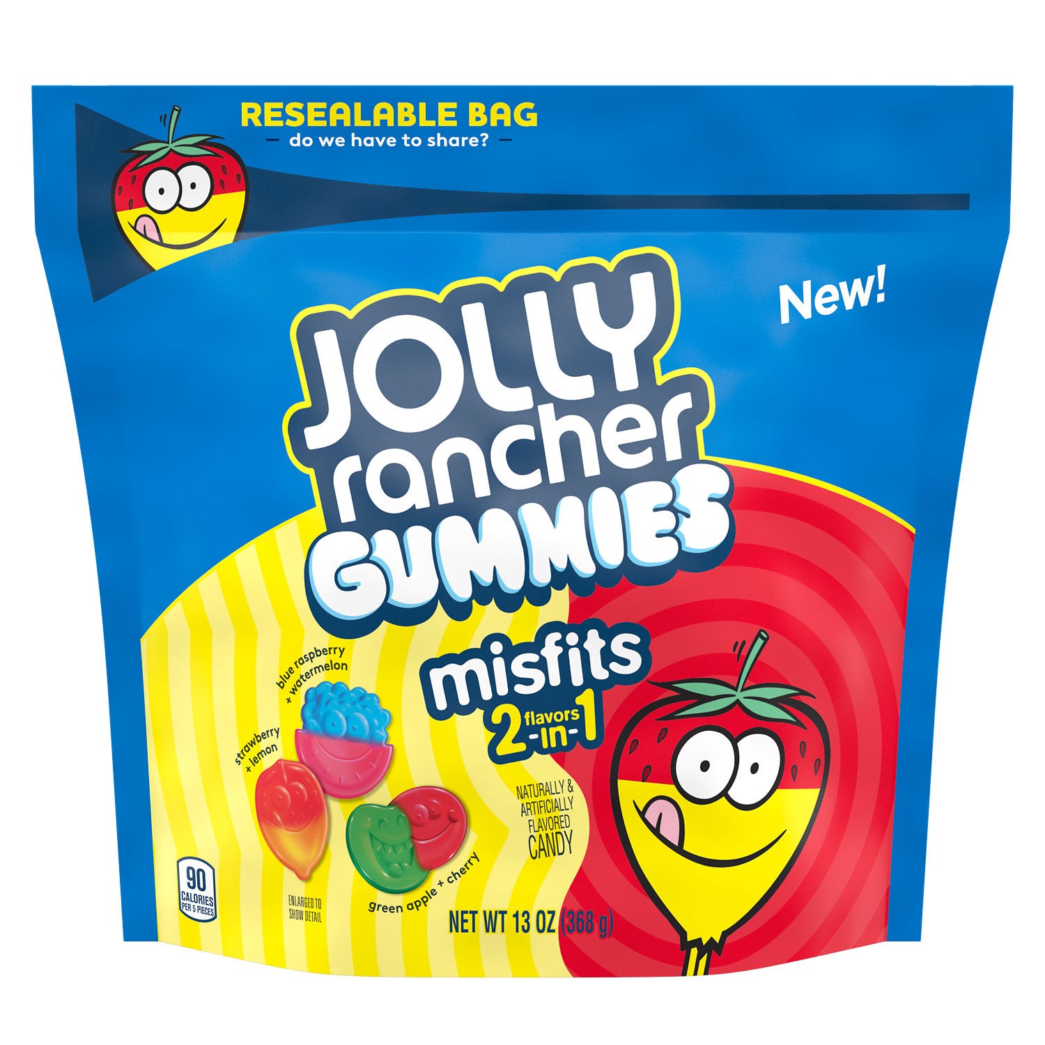 Sugar, Corn Syrup, Modified Cornstarch, Contains 2% or Less of: Malic Acid, Natural & Artificial Flavor, Sodium Citrate, Mineral Oil, Carnauba Wax, Artificial Color (Red 40, Yellow 5, Blue 1 Yellow 6)…