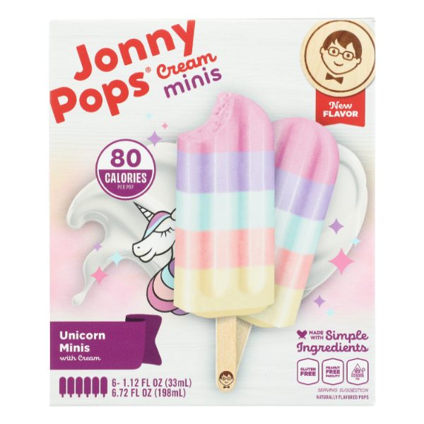 Unicorn minis with cream. Naturally flavored pops. 80 calories per pop. Gluten free. Peanut free facility. New flavor. A Better Pop: The simpler the ingredients the more delicious the pop! It's why we…