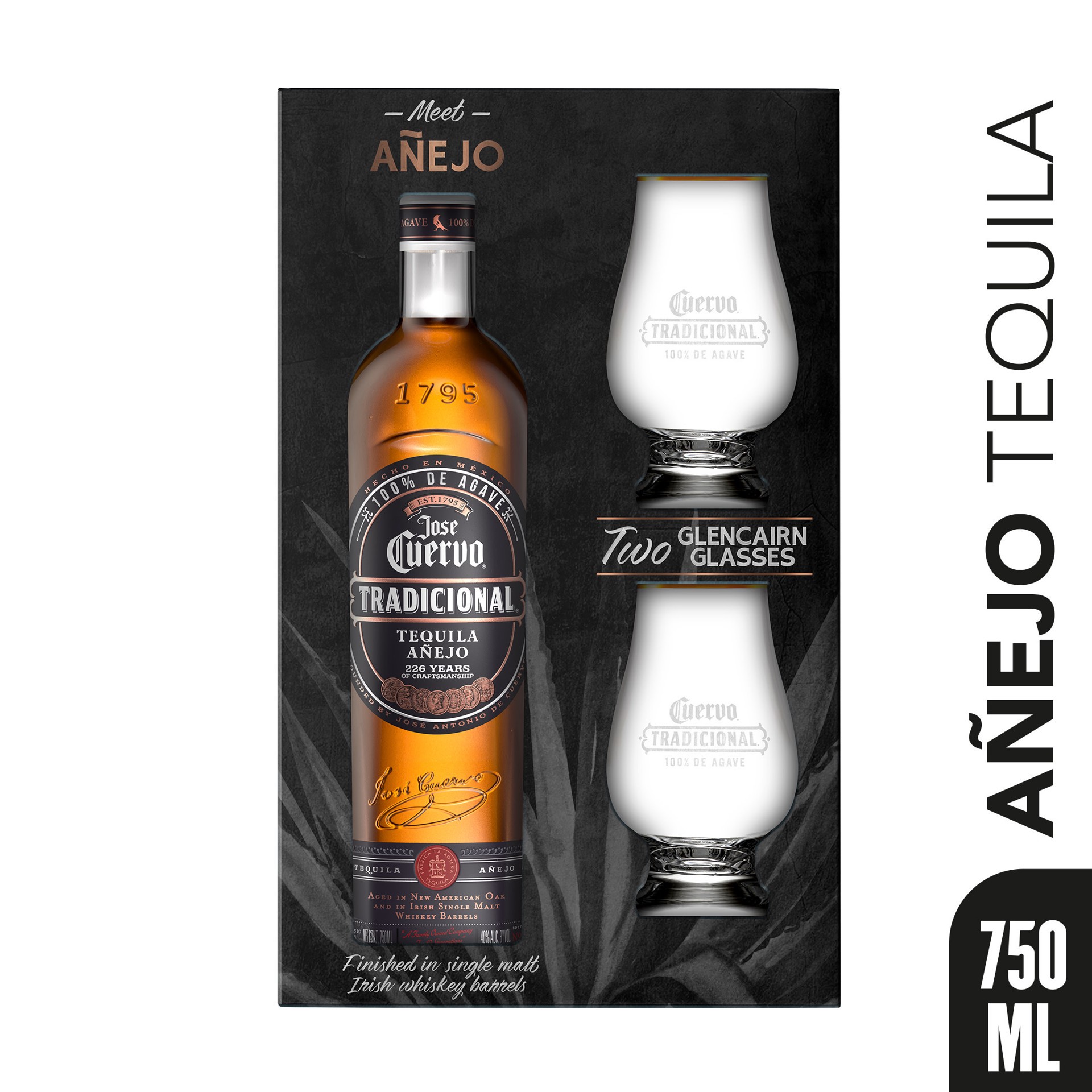 Jose Cuervo Tradicional Añejo Tequila with Two Tasting Glasses 80 Proof (750 ml)