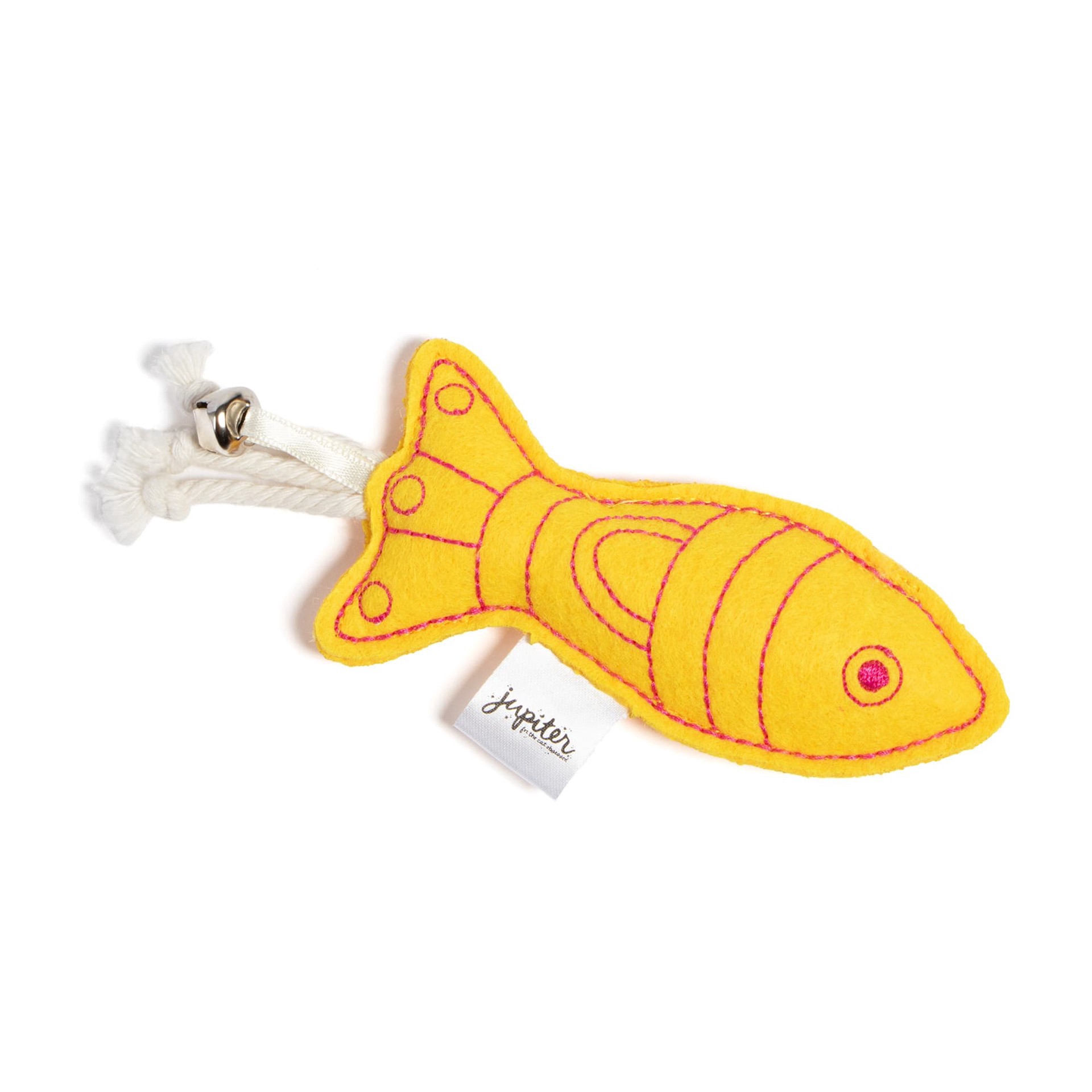 Jupiter Yellow Embroidered Felt Fish Catnip Toy, Small