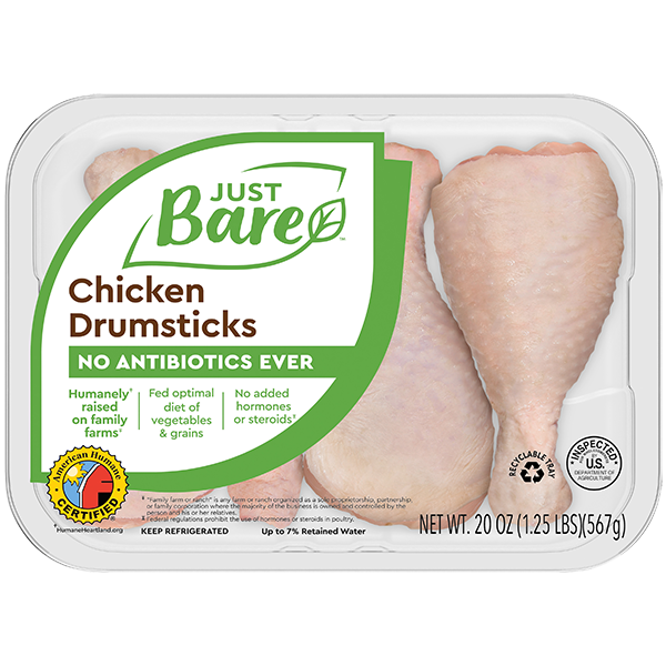 Our chicken drumsticks are 100% premium dark meat. Easy to prepare, delicious to eat. These chicken drumsticks will be a hit at dinner! As always, Just Bare provides chicken that features no antibioti…