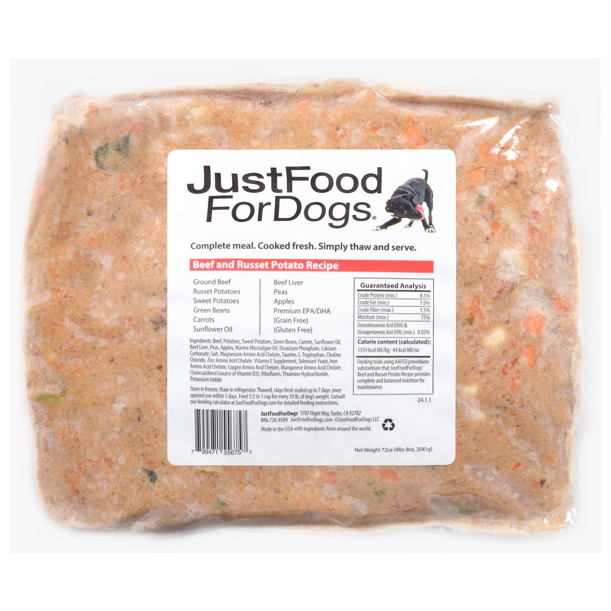 100% of the ingredients in our Beef & Potato Recipe are approved for human consumption. This all natural canine recipe is simple, healthy, uncomplicated and completely balanced for ''Maintenance.'' Th…