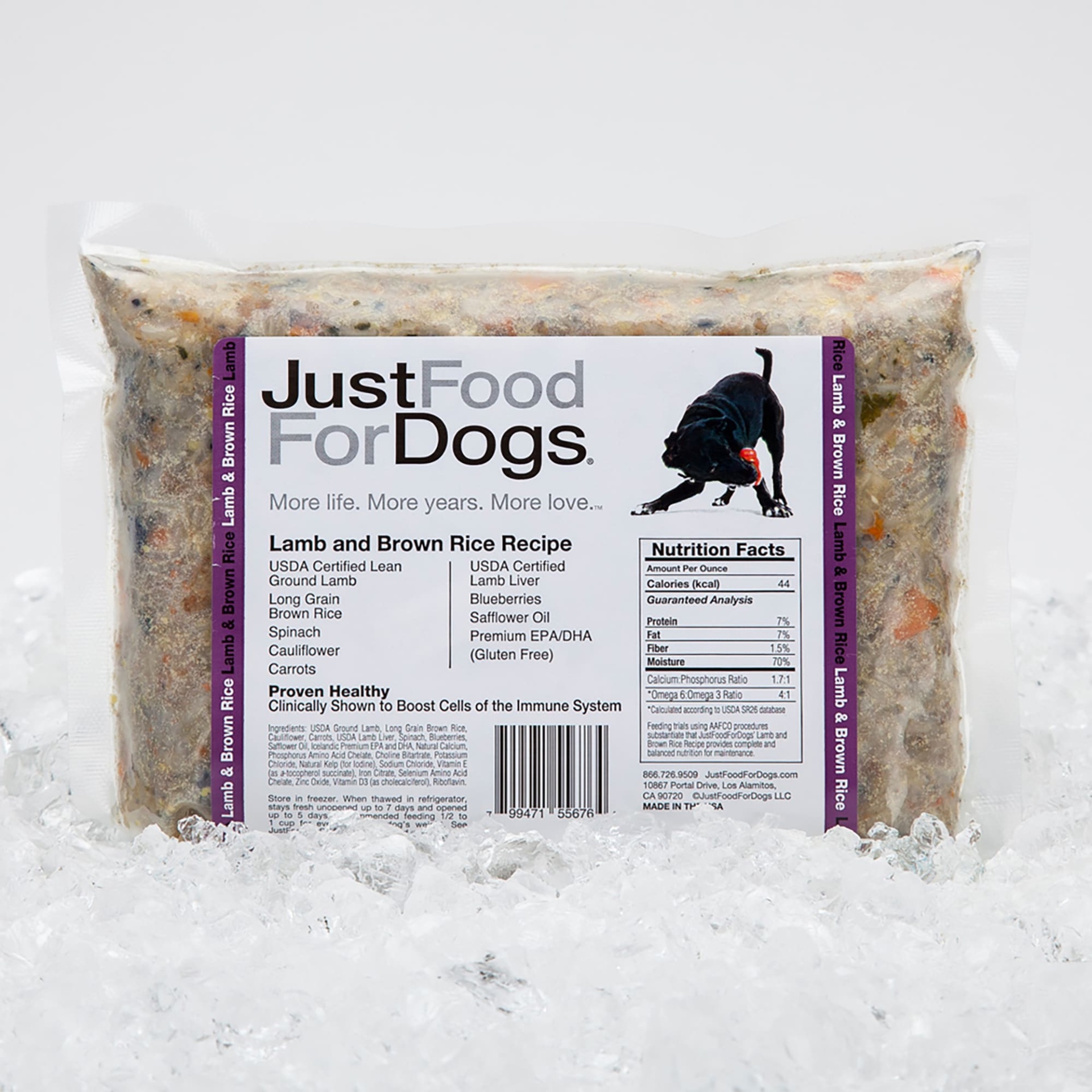 USDA Certified Lean Ground Lamb, Long Grain Brown Rice, Spinach, Cauliflower, Carrots, USDA Certified Lamb Liver, Blueberries, Safflower Oil, Premium EPA/DHA Natural Calcium, Dicalcium Phosphate Dihyd…